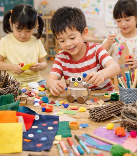 多様な材料や道具に直接触れ、指先から脳を刺激。多角的な視点を持つことで、豊かな発想力の土台を作ります。